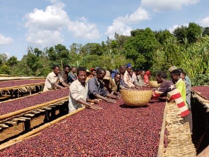 Dieser Kaffee ist eine Mischung aus natürlich verarbeiteten alten Sorten, die auf über 1600 m Höhe in Banko Gotiti, einem Dorf in der Kaffeeregion Yirgacheffe, angebaut werden. Die Kooperative hat rund 300 Mitglieder, von denen die meisten weniger als einen halben Hektar Land besitzen. In der Tasse ist er süß und weich und präsentiert Fruchtsäure mit eleganten floralen und beerigen Noten.